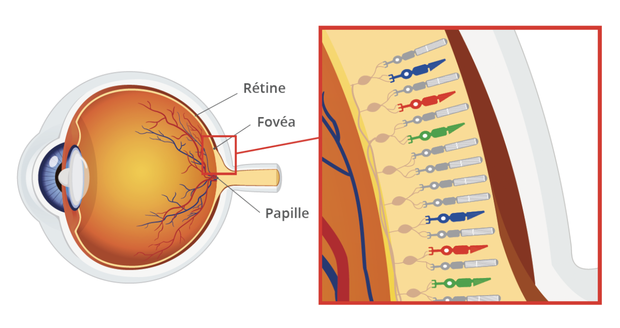 au rouge et au vert qui sont stimulés dans notre rétine.